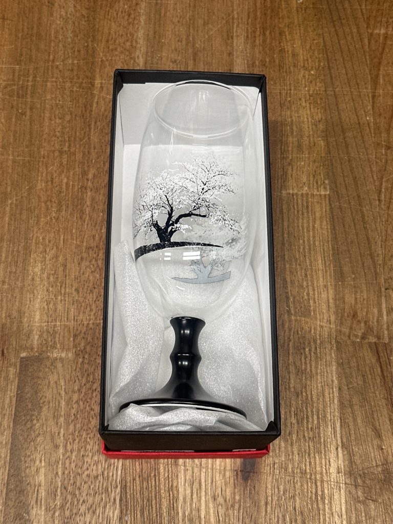 有田焼の脚部とガラスを融合させたぐらすです。 ガラス部に特殊な加工を施し、17度以下の飲み物に反応し、白い桜はピンクに代わります。 白薔薇が紅薔薇に変わるグラスもあります。 薔薇タイプのサンプルもあります。 他にぐい吞み・ワイングラがあります。気軽にお問合せください。